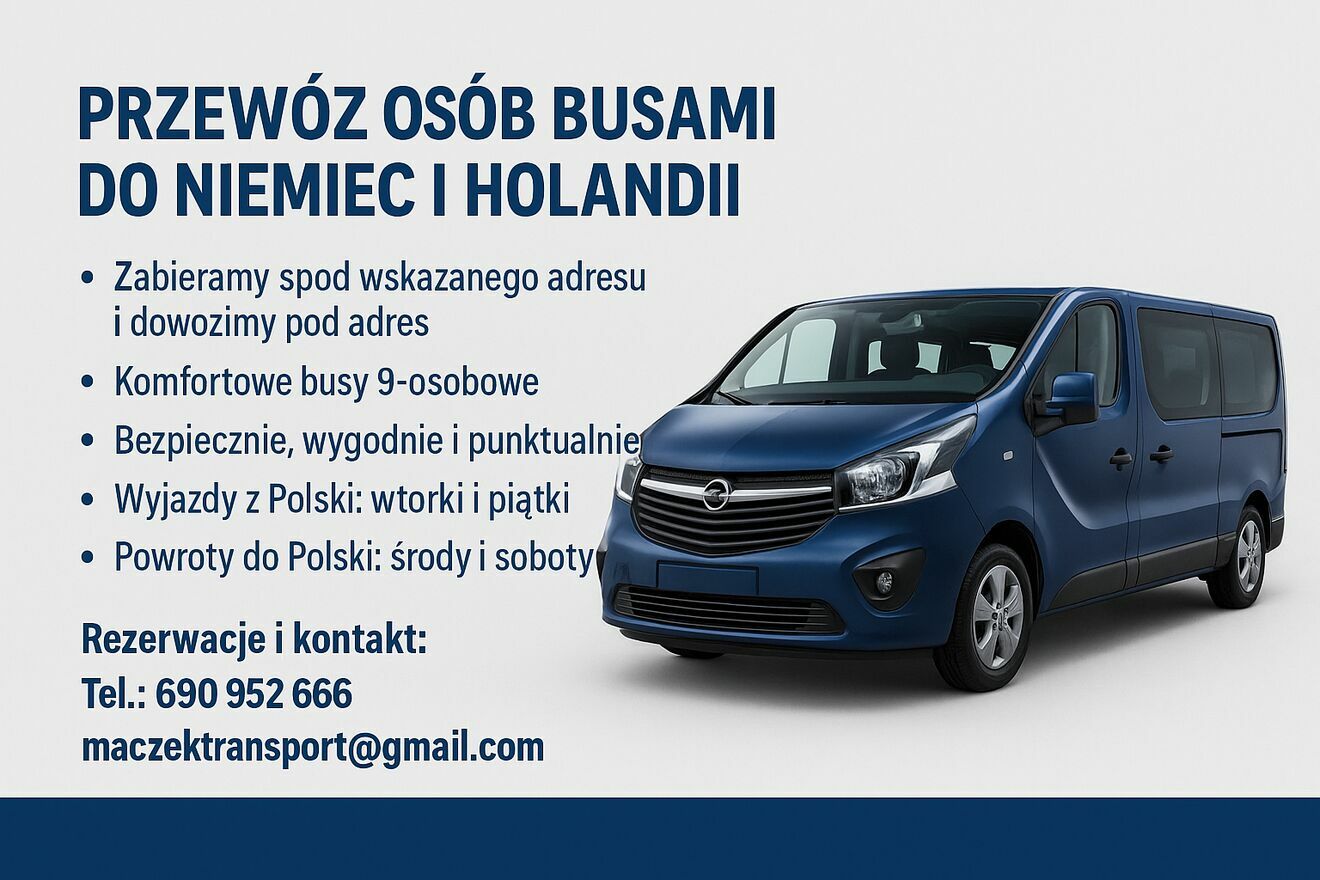 Przewóz osób, transfer na lotniska , busy do niemiec .