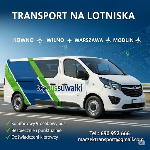️ Transfery na lotnisko – zorganizowane grupy na lotniska, osoby zabieramy z adresu zamieszkania i dowozimy na określoną godzinę , obsługujemy Kowno , Wilno, Warszawa Okęcie, Modlin, Gdańsk i Szymany .